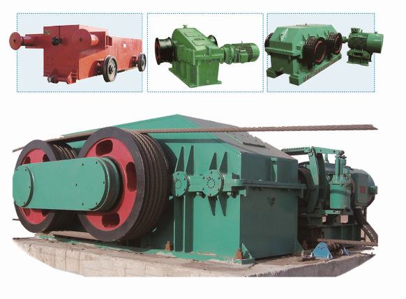 调车级车适用于煤矿、洗煤厂、电厂、水泥厂、港口等,在铁路煤仓装卸物料时,用于地面列车的调运。系统配置有绞车↓含电动机、联轴节。减速机。电机支架)、支架轮、重锤支架(含重铺)、滑车,铁牛、托绳轮组、导向轮、压绳轮组等,通过钢丝绳组合成调车系统。调车绞车具有以下特点: